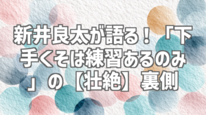 動画冒頭から新井さんの力強い言葉が炸裂します。「下手くそは練習あるのみ」。一見すると単純な言葉ですが、新井さんの口から発せられると、その重みが全く違います。この言葉は、ただ単に練習すれば上手くなるという意味ではありません。「下手くそ」であることを自覚し、そこから逃げずにひたすら努力を重ねることの重要性を説いています。