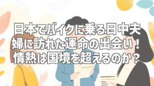 | 記事タイトル | 日本でバイクに乗る日中夫婦に訪れた運命の出会い!情熱は国境を超えるのか? |