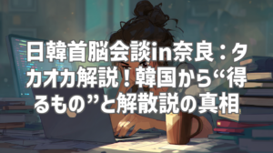 先日、読売テレビニュースで公開された「【タカオカ解説】奈良で日韓首脳会談へ 韓国から“得るもの”と解散説のワケ」という動画を視聴しました。奈良で行われた日韓首脳会談の裏側、韓国側の狙い、そして国内政治との絡み合いまで、高岡解説委員が非常に分かりやすく解説していて、あっという間の18分でした。特に、日韓関係の複雑さを理解する上で、非常に有益な情報が満載だと感じました。早速、内容を深掘りしてレビューしていきたいと思います。