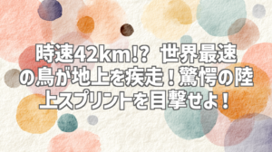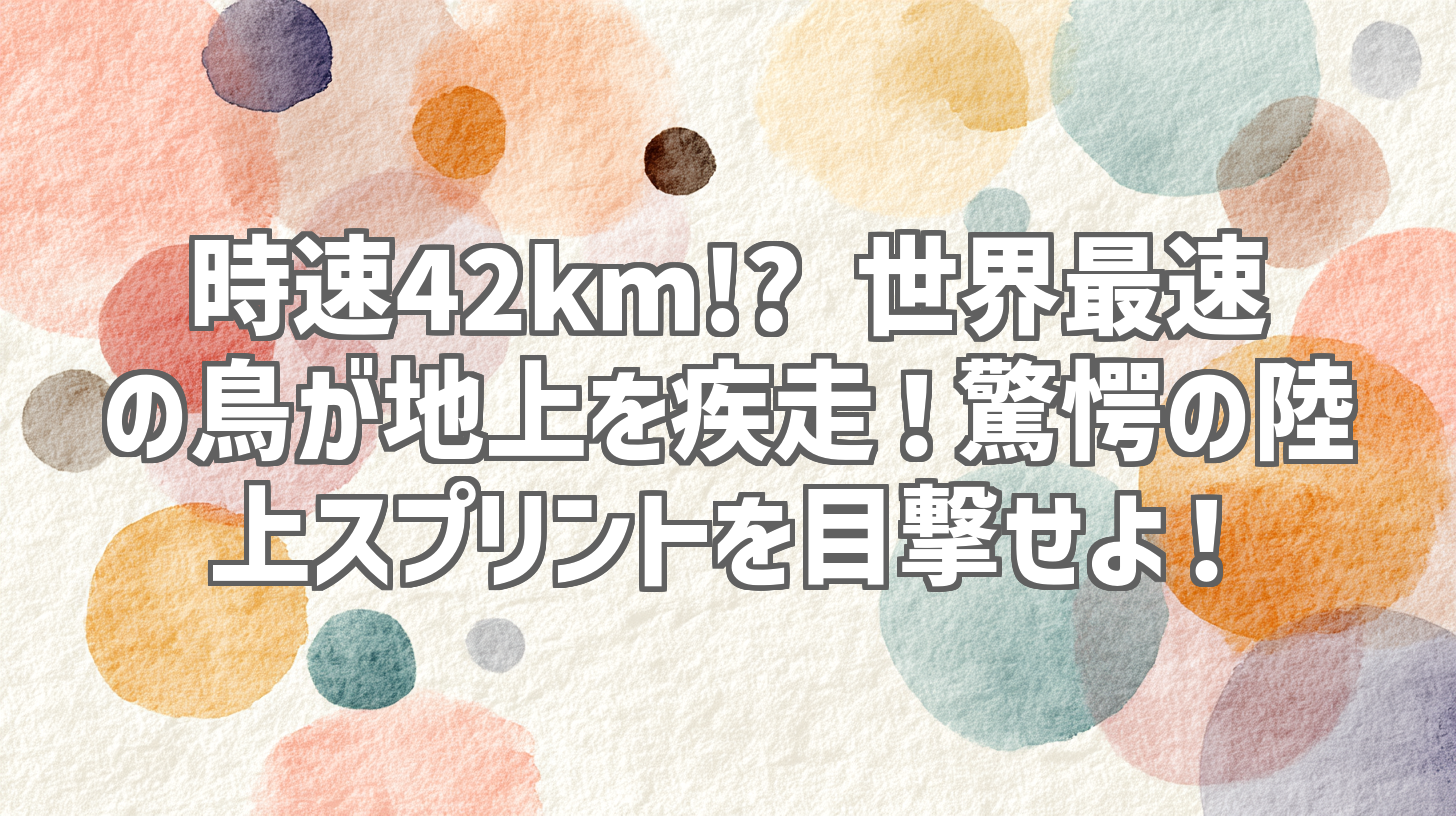 | 動画タイトル | 世界最速の鳥が走る!? 時速42キロの驚き! #世界最速 #鳥のスピード #野生動物 #陸上スプリント #自然観察 |