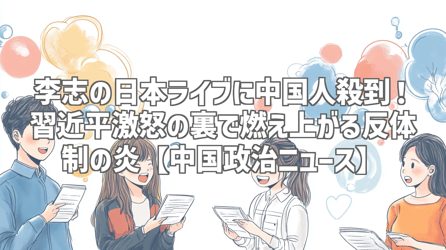 | 記事タイトル | 李志の日本ライブに中国人殺到!習近平激怒の裏で燃え上がる反体制の炎【中国政治ニュース】 |