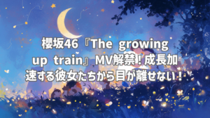 櫻坂46の新曲『The growing up train』のMUSIC VIDEOが公開されましたね!今回のMVは、彼女たちの成長と変化を、疾走感あふれる映像と楽曲で表現していて、公開直後からSNSでも話題沸騰中です。私も早速視聴しましたが、その映像美とメッセージ性の強さに圧倒されました。過去のMVからの変化や、メンバーの表現力の進化など、見どころ満載で、何度でもリピートしたくなる中毒性があります。今回は、そんな『The growing up train』のMVを徹底的にレビューしていきます!