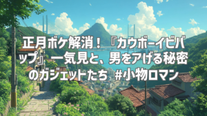正月休み、ついついダラダラ過ごしてしまって、そろそろエンジンをかけ直したい…そんなあなたに朗報!YouTubeチャンネル「小物ロマン」が、まさにそんな気分を吹き飛ばしてくれる動画を公開しています。今回は、正月ボケを吹き飛ばす『カウボーイビバップ』一気見体験と、男をアゲる秘密のガジェット紹介という、なんとも魅力的な組み合わせ。わずか1分強の動画の中に、濃縮された情報とロマンが詰まっていました。私も早速視聴してみたので、その内容を詳しくレビューしていきます!