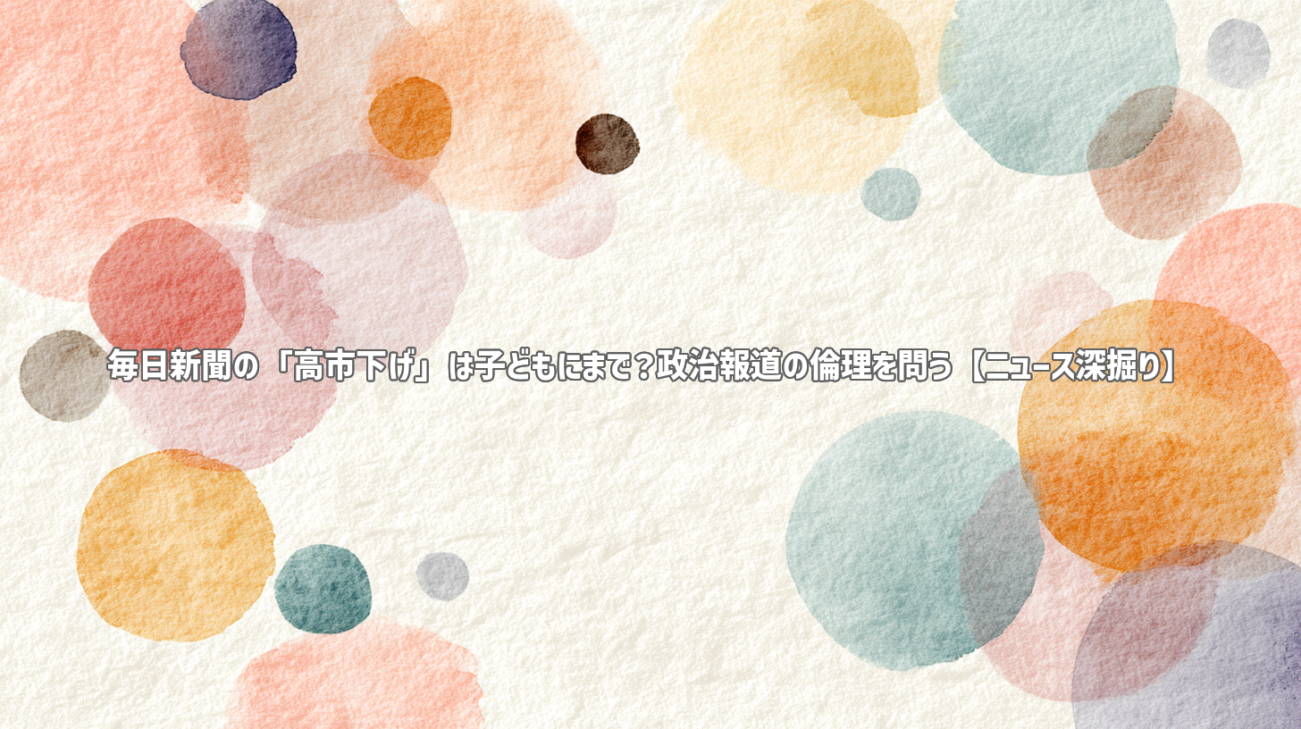 今回、「毎日新聞の「高市下げ」は子どもにまで?政治報道の倫理を問う【ニュース深掘り】」というテーマで、YouTubeチャンネル「ズバッと政論!」が投稿した動画「毎日新聞、子どもにまで高市下げを広める」を深く掘り下げてきました。この動画は、大手メディアが子ども向け媒体で特定の政治家に対して行ったとされる印象操作の疑惑を提示し、政治報道の倫理、特に子どもたちへの影響という点で、私たちに重要な問いを投げかけています。