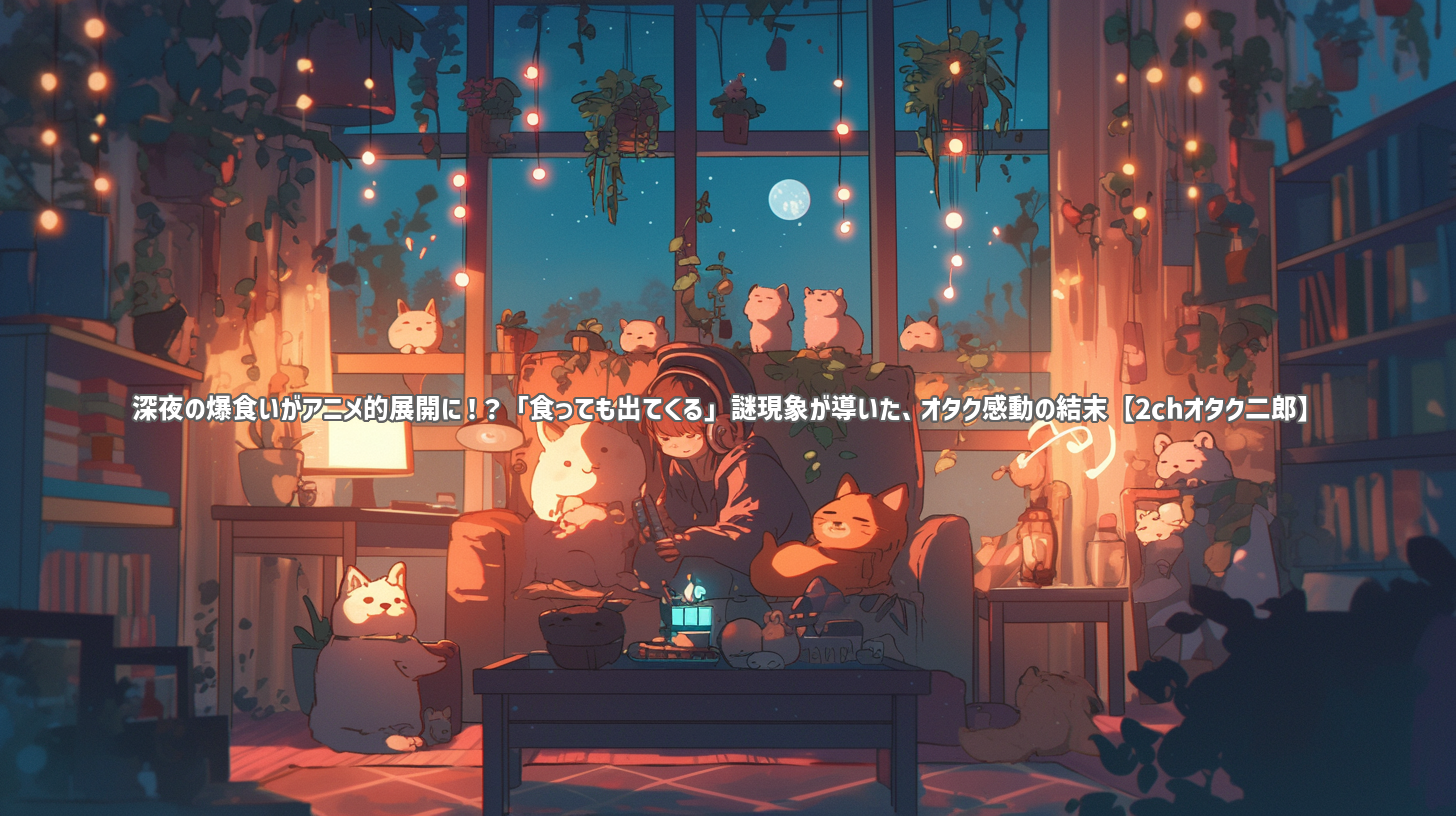 深夜、誰もが経験したことがあるであろう抗いがたい食欲。ストレスや孤独感から、ついつい手を伸ばしてしまう背徳的な夜食は、ときに私たちの心に複雑な感情を残します。しかし、もしその「深夜の爆食い」が、まるでアニメのワンシーンのように不可思議な現象を引き起こし、最終的には心温まる感動へと繋がるとしたら、あなたはどう感じるでしょうか?