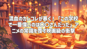 今回ご紹介した「混血のカレコレ」の「この学校で一番偉いのは〇〇さんだった」は、わずか52秒という短さの中に、驚き、笑い、そして深い洞察を詰め込んだ、まさに「映画級の衝撃」を味わえる一本でした。常識を覆す大胆な発想と、それを説得力のある形で表現するアニメーションのクオリティは、流石の一言に尽きます。