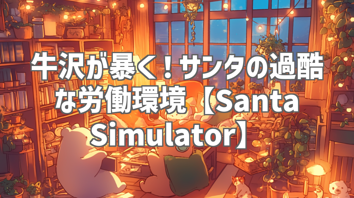 今年も残すところあとわずか。街はイルミネーションで彩られ、クリスマスムード一色ですね。そんな中、ふと「サンタさんって一体どんな仕事してるんだろう?」って思いませんでしたか?プレゼントを配る素敵なイメージの裏には、想像を絶する苦労があるのかも…! 今回は、人気ゲーム実況者・牛沢さんがプレイするゲーム【Santa Simulator】を通して、謎に包まれたサンタクロースの労働環境を徹底解剖します! 爆笑必至、そしてちょっぴり考えさせられる内容となっていますので、ぜひ最後までお付き合いください!