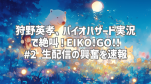 狩野英孝さんの公式YouTubeチャンネル「EIKO!GO!!」から、バイオハザード実況生配信の第2弾がアップされました!今回は「バイオハザード レクイエム」に挑戦。私もリアルタイムで視聴しましたが、予想を遥かに超える絶叫と、時折見せるゲームセンス(?)に、笑いと興奮が止まりませんでした!特に、あの有名なゾンビ犬のシーンは必見!今回は、そんな熱狂的な生配信の模様を、SWELLの装飾をフル活用して、余すところなくお届けします!