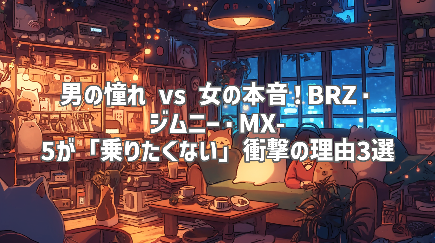 | 記事タイトル | 男の憧れ vs 女の本音!BRZ・ジムニー・MX-5が「乗りたくない」衝撃の理由3選 |