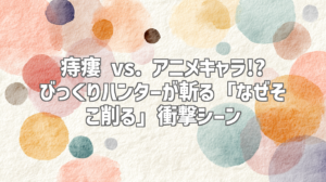 この動画の最大の魅力は、医学的な知識とアニメの表現を巧みに結びつけている点です。びっくりハンターさんは、痔瘻という病気を、アニメでよくある「特定の場所が繰り返し破壊される」という描写になぞらえて解説しています。