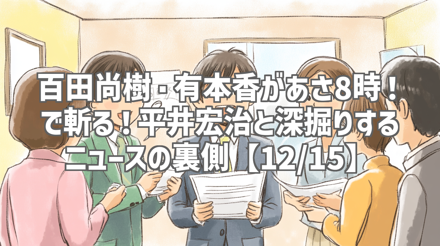 | 動画タイトル | R7 12/15【ゲスト:平井 宏治】百田尚樹・有本香のニュース生放送 あさ8時! 第750回 |