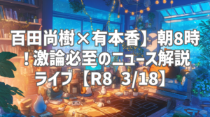 | 動画タイトル | R8 3/18 百田尚樹・有本香のニュース生放送 あさ8時! 第801回 |