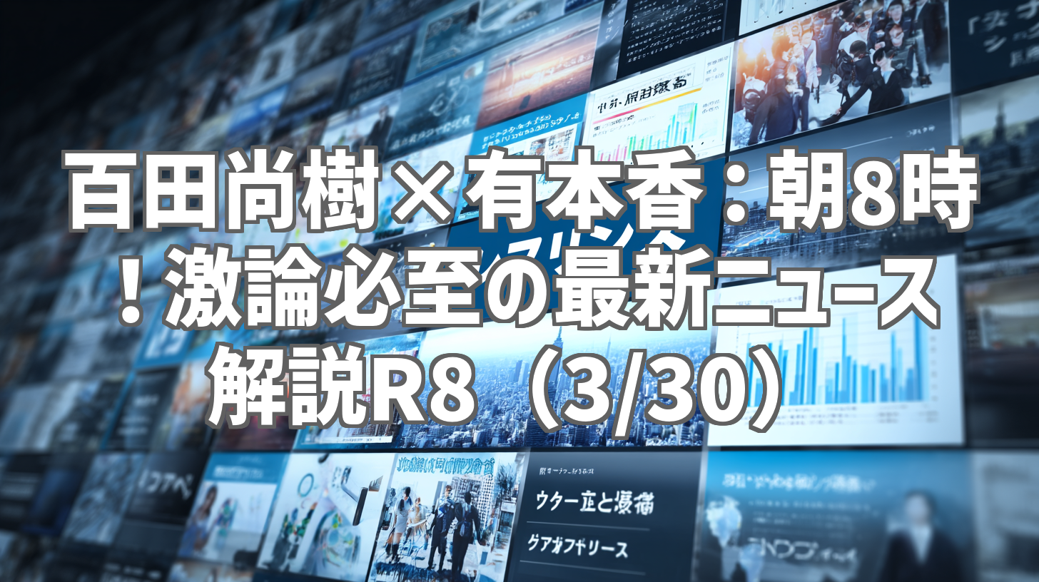 朝のニュース番組は数あれど、辛口な論評と鋭い視点で他とは一線を画す「ニュースあさ8時!」。特に、百田尚樹さんと有本香さんのコンビは、その過激とも言える発言で賛否両論を巻き起こしつつも、多くの視聴者を惹きつけています。今回は、2026年3月30日に公開された「R8 3/30 百田尚樹・有本香のニュース生放送 あさ8時! 第808回」を徹底レビュー!一体どんなニュースが飛び出し、どんな議論が展開されたのでしょうか?早速チェックしていきましょう!見逃せないポイントが満載です!