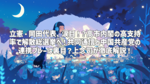立憲・岡田代表、涙目!?高市内閣の高支持率で解散総選挙へ!共同通信と中国共産党の連携プレーは裏目?上念司が徹底解説!