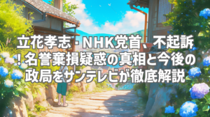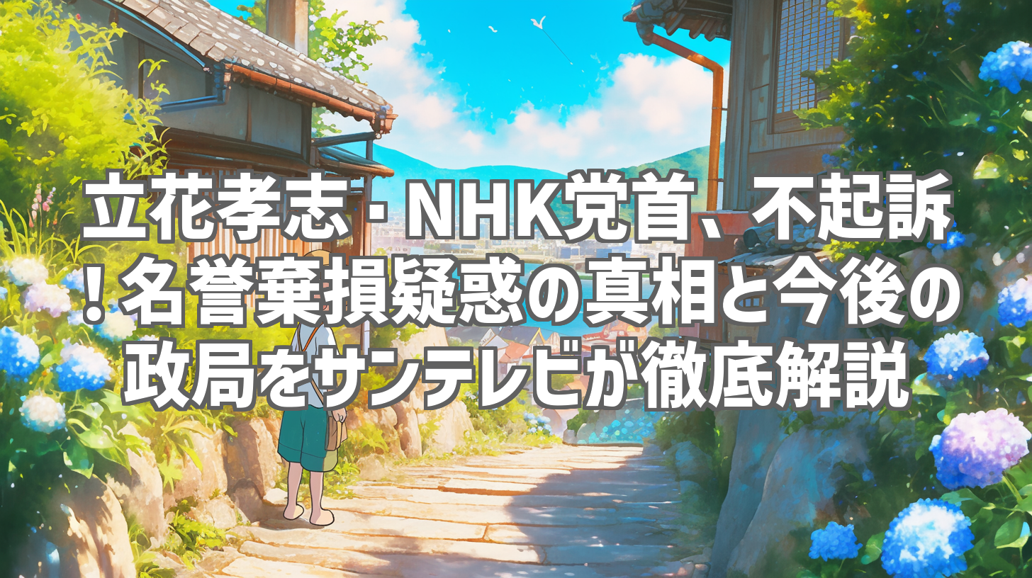 立花孝志・NHK党首、不起訴!名誉棄損疑惑の真相と今後の政局をサンテレビが徹底解説