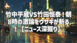 朝の情報番組は数あれど、ここまでヒリつくような議論を繰り広げる番組はそうそうないでしょう。今回は、ウサギの独り言チャンネルが、あの竹中平蔵氏と竹田恒泰氏が激論を交わした「ニュースあさ8時」の模様を、わずか1分に凝縮して深掘りしています。普段はなかなか目にすることのできない、両者の丁々発止のやり取りを、ウサギさんの鋭い視点を通して楽しめる動画です。一体どんな火花が散っているのか、早速チェックしていきましょう!