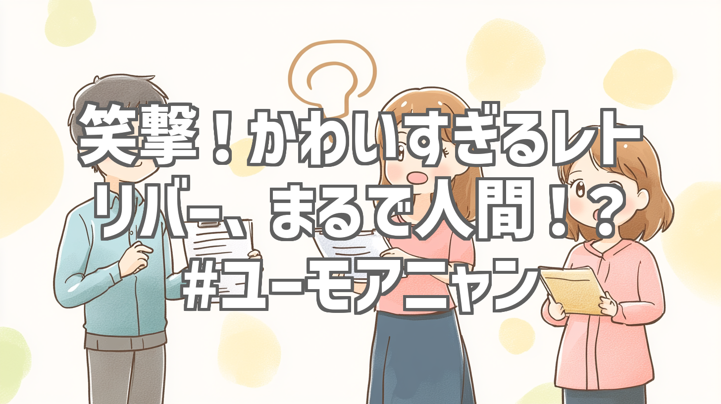 YouTubeで見つけた、とんでもなくキュートな動画をご紹介します!その名も「人のように笑うかわいいレトリバー」。タイトルからして期待が高まりますよね?投稿主は「ユーモアニャン」さん。たった11秒の短い動画なんですが、もう、中毒性がハンパないんです!レトリバー好きはもちろん、動物好きなら絶対に見逃せない、笑撃映像をぜひご覧ください!