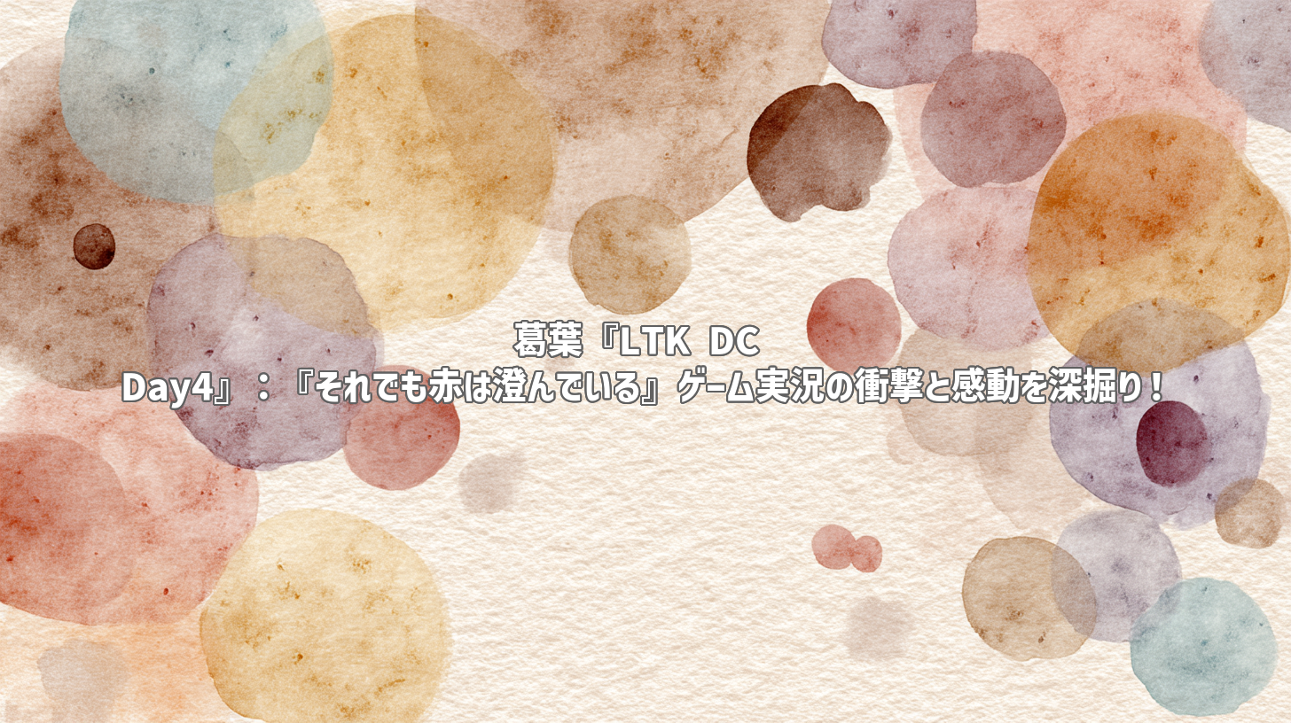 YouTubeのゲーム実況というジャンルは、単なるゲームプレイの共有を超え、配信者の個性や感情が織りなす壮大な物語として多くの視聴者を魅了しています。今回ご紹介する動画「【LTK DC】それでも赤は澄んでいる【本番 Day4】」は、まさにその真骨頂。人気VTuber葛葉さんが挑んだ、8時間にも及ぶ長尺ゲーム実況は、視聴者に深い衝撃と感動を与え、そのタイトル「葛葉『LTK DC Day4』:『それでも赤は澄んでいる』ゲーム実況の衝撃と感動を深掘り!」の通り、多くの話題を呼びました。