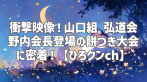 「ひろクンch」が捉えた、山口組弘道会 野内会長が登場する餅つき大会の映像は、まさに衝撃的でした。普段見ることのできない裏社会の様子を垣間見ることができ、非常に興味深い内容となっています。たった14秒の動画ですが、そのインパクトは絶大。まだ見ていない方は、ぜひ一度視聴してみてください。きっと、あなたも驚くはずです。そして、「ひろクンch」の今後の活動にも、ぜひ注目していきましょう!
