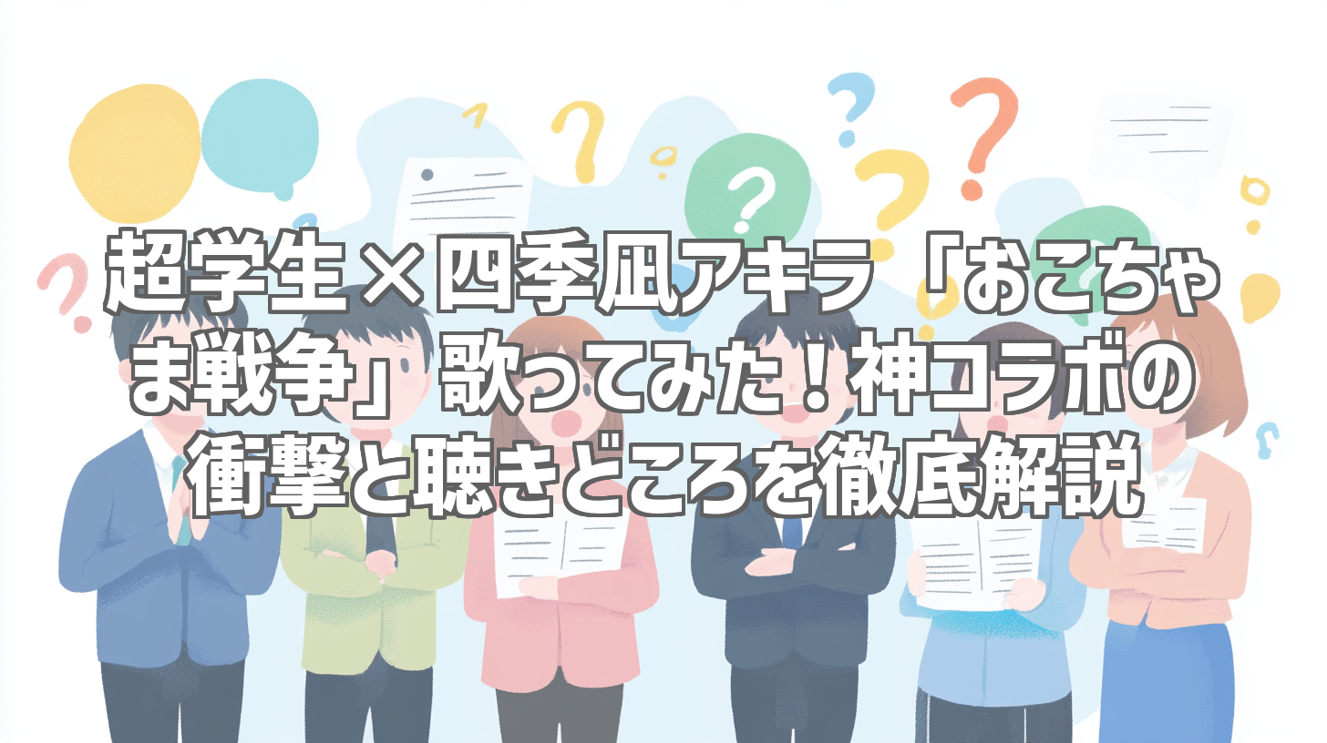 YouTubeの音楽シーンに、また一つ歴史に残るコラボレーションが誕生しました!あの圧倒的な歌唱力で聴く者を惹きつけてやまない「超学生」さんと、唯一無二の存在感を放つ「四季凪アキラ」さんがタッグを組み、人気楽曲「おこちゃま戦争」を歌い上げたんです。このニュースを聞いた瞬間から、私の心は期待でパンパンに膨れ上がっていました。そして、実際に動画を視聴した今、その興奮は最高潮に達しています。