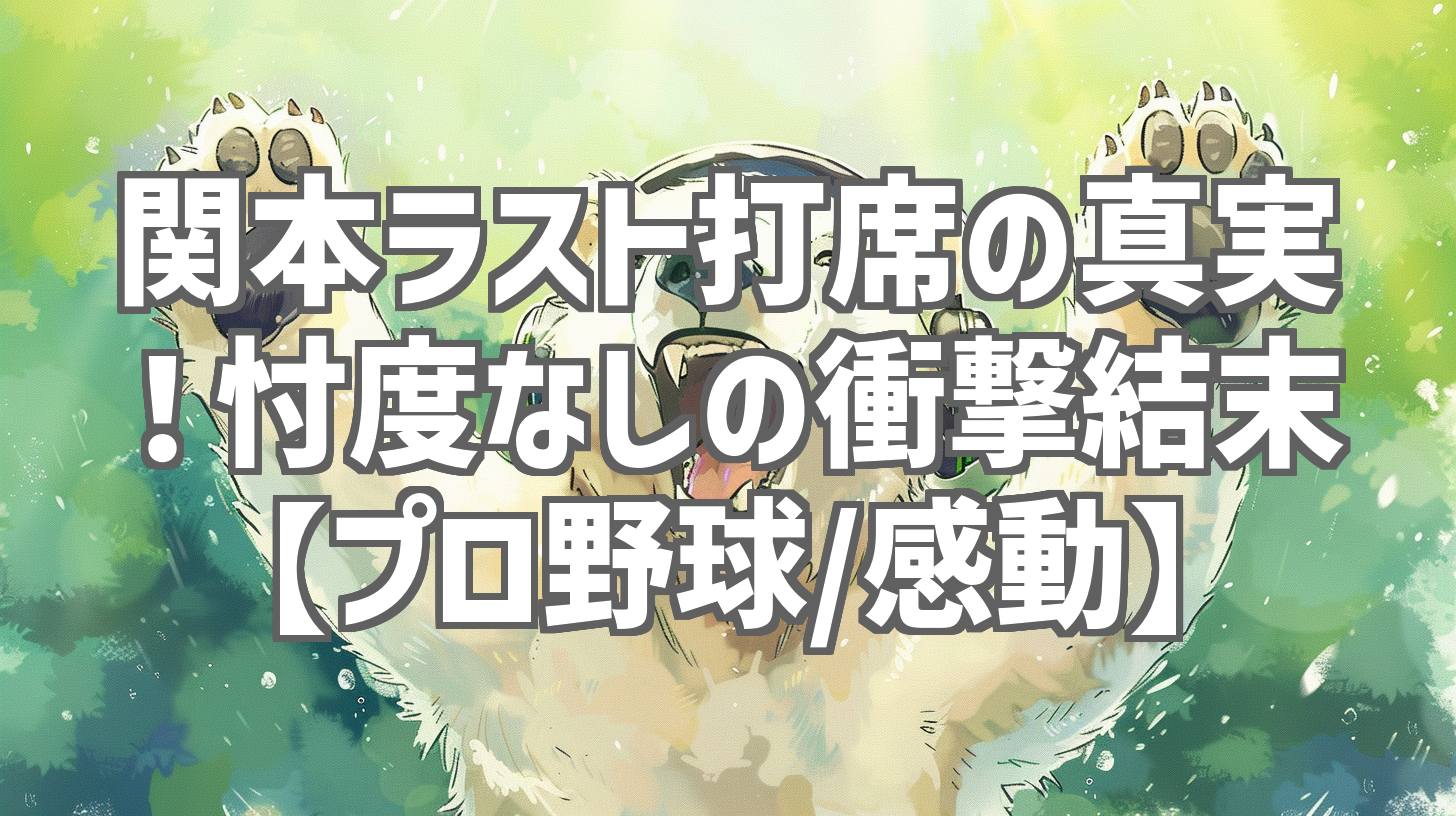 プロ野球ファンの皆さん、感動と興奮に包まれたあの瞬間を覚えていますか?今回は、阪神タイガースのベテラン、関本賢太郎選手の現役最終打席にスポットを当てたYouTube動画「忖度など一切なかった関本の現役最終打席がwww #プロ野球 #野球」を徹底レビューします。多くのファンが涙した、あのドラマチックな瞬間。しかし、その裏には意外な事実が隠されていた…?ベースボールブレンドさんの動画で、もう一度あの感動を味わい、知られざる真実に迫りましょう!