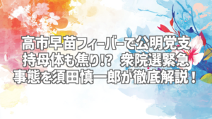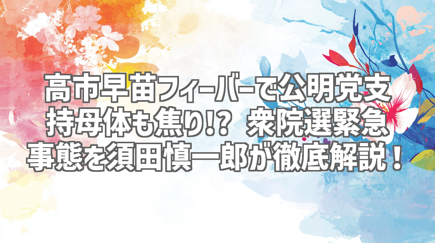 衆院選が近づくにつれ、政局はますます混沌としてきましたね。特に注目を集めているのが、自民党の高市早苗議員の動向です。彼女の人気が予想以上に高まり、なんと公明党の支持母体まで焦り始めているというから驚きです! 今回は、ジャーナリストの須田慎一郎氏がYouTubeチャンネル「須田慎一郎のただいま取材中! 」で公開した動画をもとに、この緊急事態の真相を徹底的に解説していきます。一体何が起きているのか、そして衆院選にどのような影響を与えるのか、詳しく見ていきましょう!