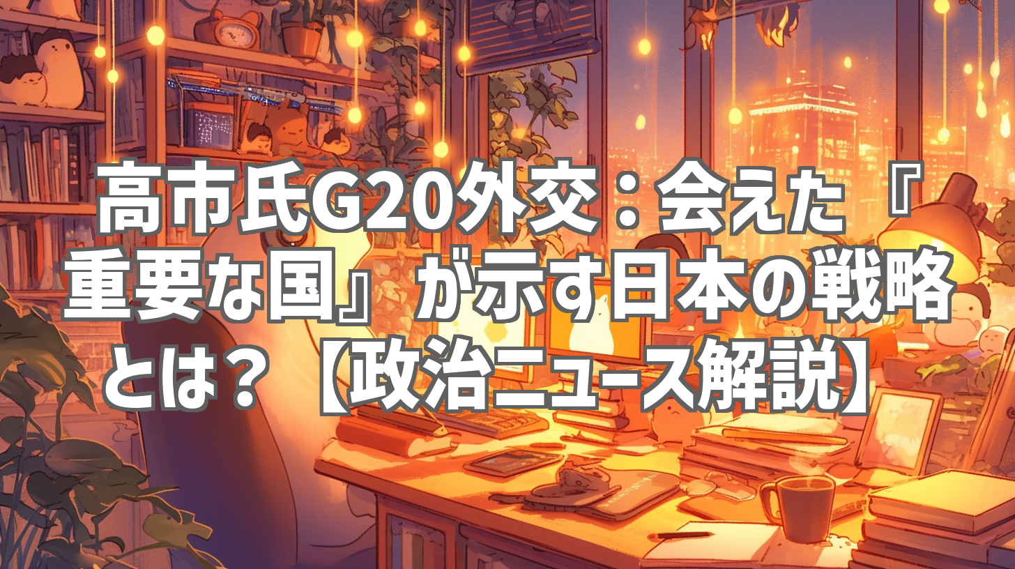 このレビューでは、高市首相のG20外交における「重要な3つの国」との会談が、日本の国際社会における立ち位置や、今後の戦略にどう影響するのかを深掘りしていきます。政治ニュースに興味がある方、国際関係をより深く理解したい方は、ぜひ最後までお付き合いください!