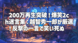 YouTubeを徘徊していたら、とんでもない動画に出会ってしまった!その名も【2chショート】越智秀一郎さんの「㊗️200万再生!!笑える迷言集〜反撃の一言~【2ch面白スレ】#shorts」。タイトルからして既に面白い予感しかしないけど、実際に見てみたら案の定、腹筋崩壊寸前まで笑わせられました。2chの過去スレから厳選された迷言・反撃集は、まさにネット文化の宝庫!今回は、この爆笑必至の動画を徹底的にレビューしていきます!あなたは笑わずにいられるか!?