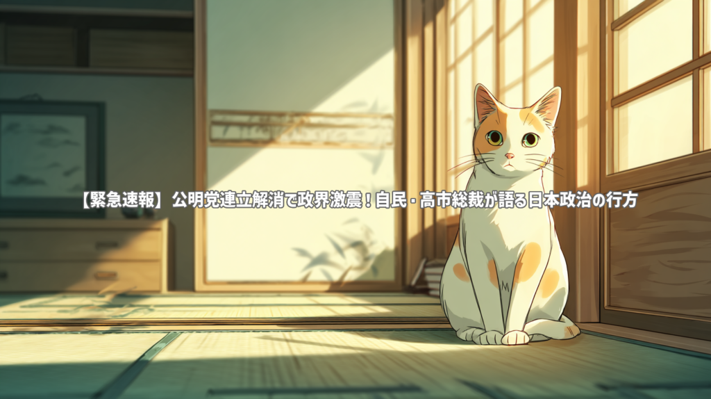 【緊急速報】公明党連立解消で政界激震!自民・高市総裁が語る日本政治の行方