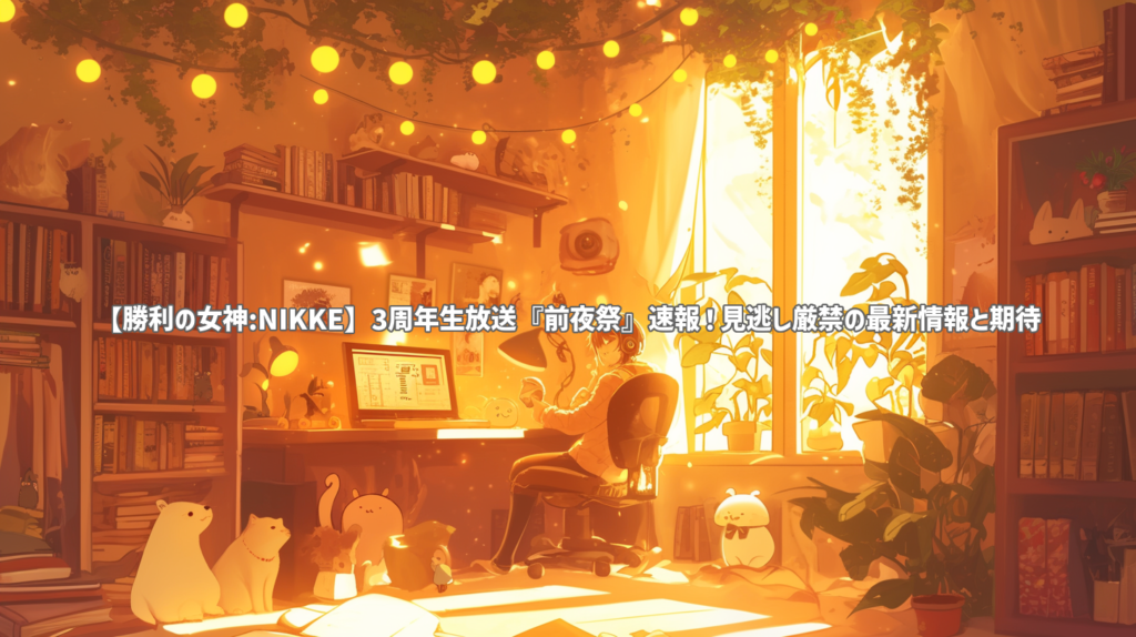 熱狂的な指揮官の皆さん、そして『勝利の女神:NIKKE』の世界に魅せられたすべての方々へ!今回は、来るべき3周年アニバーサリーを目前に控え、その期待感を最高潮に高めた特別番組「【勝利の女神:NIKKE】 3周年記念生放送 栄光を祈る前夜祭」について、深... -