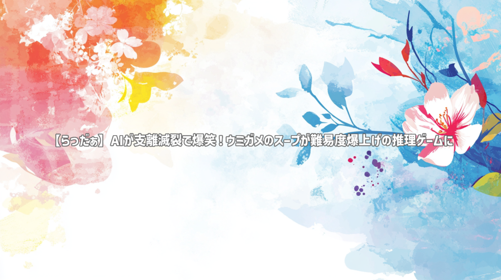 近年、AI技術の進化は目覚ましく、私たちの生活やエンターテインメントの形を大きく変えつつあります。そんなAIと、古くから愛される水平思考ゲーム「ウミガメのスープ」が融合したらどうなるのか?人気ゲーム実況者らっだぁさんの最新動画「AIに質問をし... -