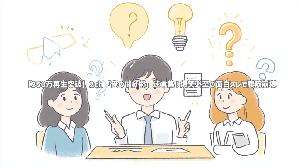 インターネットの海には、時に私たちの想像を遥かに超えるユニークな発想や、思わず吹き出してしまうような迷言が溢れています。今回ご紹介するのは、まさにそんな珠玉のコンテンツを集めた一本。「【350万再生突破】2ch「俺の儲け術」迷言集!爆笑必至の... -
