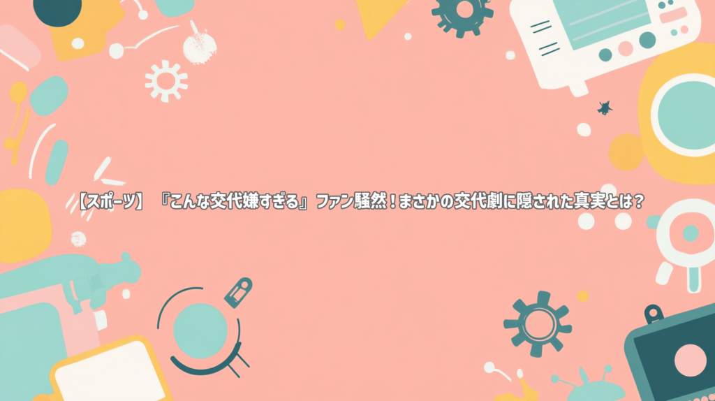 【スポーツ】『こんな交代嫌すぎる』ファン騒然!まさかの交代劇に隠された真実とは?