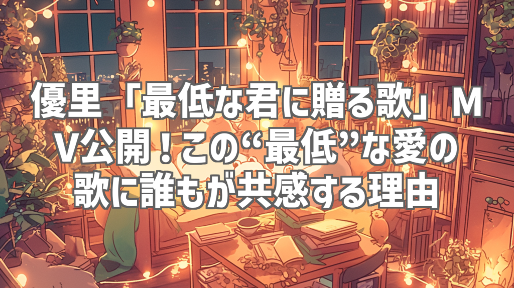 優里「最低な君に贈る歌」MV公開!この“最低”な愛の歌に誰もが共感する理由 「また優里がやってくれた…!」そう思わずにはいられませんでした。先日公開された優里さんの新曲『最低な君に贈る歌』のOfficial Music Videoを視聴して、心臓を鷲掴みにされた... -