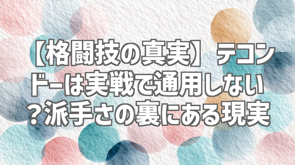 【格闘技の真実】テコンドーは実戦で通用しない?派手さの裏にある現実 皆さん、こんにちは!人気YouTubeレビューブロガーのタケルです。今日は、格闘技の世界に一石を投じる衝撃的な動画を取り上げます。その名も「派手に見せるだけのテコンドー⋯実戦では... -