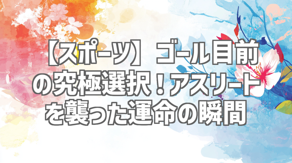 【スポーツ】ゴール目前の究極選択!アスリートを襲った運命の瞬間 皆さん、こんにちは!人気YouTubeレビューブロガーの[あなたの名前]です。今日のテーマは、スポーツが持つ最高のドラマ、そしてアスリートが直面する究極の選択です。今回ご紹介するのは... -