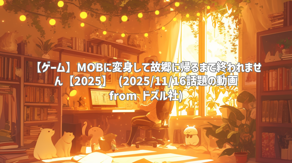 【ゲーム】MOBに変身して故郷に帰るまで終われません【2025】 (2025/11/16話題の動画 from ドズル社) 動画: MOBに変身して故郷に帰るまで終われません【2025】 (YouTubeより) 動画情報 チャンネル: ドズル社 公開日: 2025年11月15日 再生回数: 約287,344回... -
