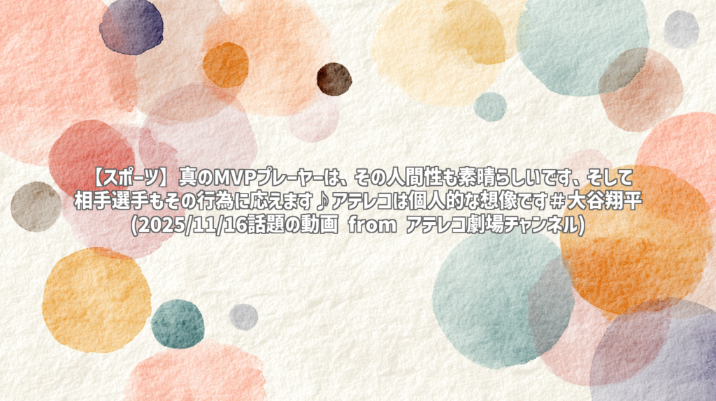 【スポーツ】真のMVPプレーヤーは、その人間性も素晴らしいです、そして相手選手もその行為に応えます♪アテレコは個人的な想像です#大谷翔平 (2025/11/16話題の動画 from アテレコ劇場チャンネル) 動画: 真のMVPプレーヤーは、その人間性も素晴らしいです... -