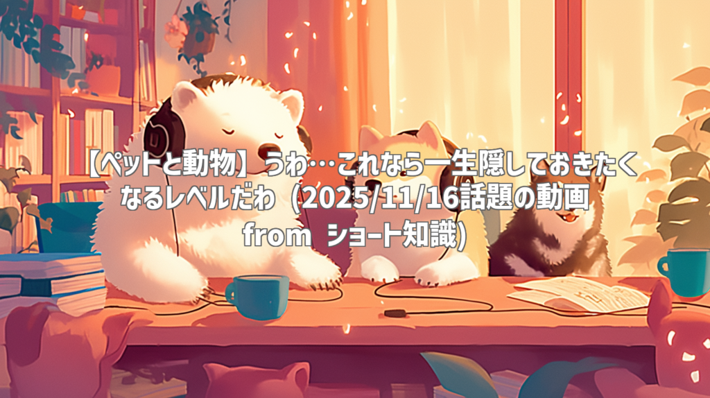 【ペットと動物】うわ…これなら一生隠しておきたくなるレベルだわ (2025/11/16話題の動画 from ショート知識) 動画: うわ…これなら一生隠しておきたくなるレベルだわ (YouTubeより) 動画情報 チャンネル: ショート知識 公開日: 2025年11月14日 再生回数: ... -