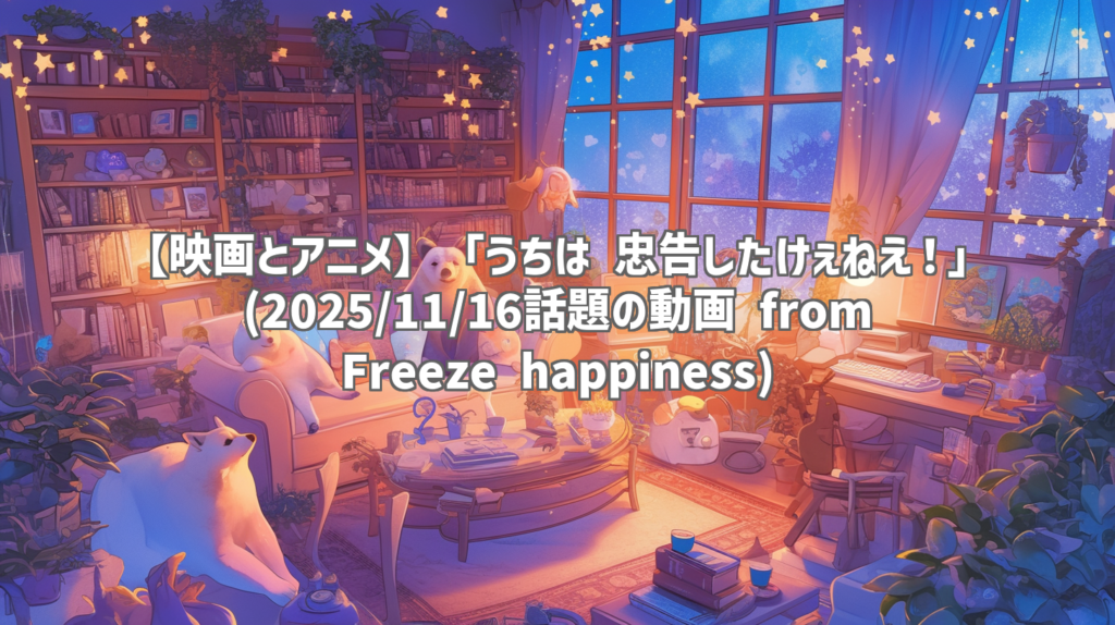 【映画とアニメ】「うちは 忠告したけぇねえ!」 (2025/11/16話題の動画 from Freeze happiness) 動画: 「うちは 忠告したけぇねえ!」 (YouTubeより) 動画情報 チャンネル: Freeze happiness 公開日: 2025年11月13日 再生回数: 約790,172回 動画の長さ: 1...