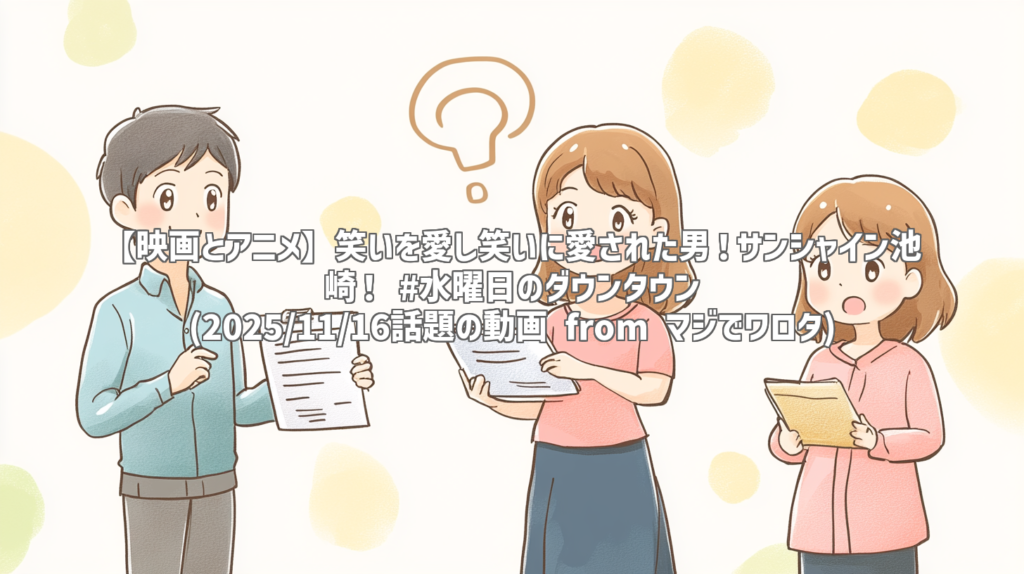 【映画とアニメ】笑いを愛し笑いに愛された男!サンシャイン池崎! #水曜日のダウンタウン (2025/11/16話題の動画 from マジでワロタ) 動画: 笑いを愛し笑いに愛された男!サンシャイン池崎! #水曜日のダウンタウン (YouTubeより) 動画情報 チャンネル: ... -