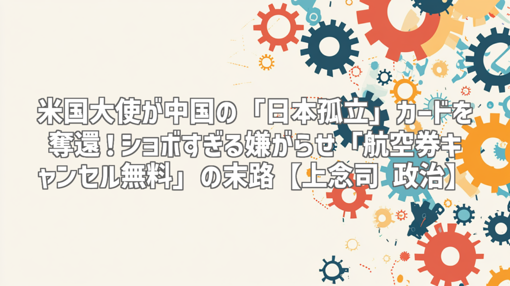 米国大使が中国の「日本孤立」カードを奪還!ショボすぎる嫌がらせ「航空券キャンセル無料」の末路【上念司 政治】 皆さん、こんにちは!今日のレビューは、思わず「スカッとした!」と叫んでしまうような、国際政治の裏側を鋭く切り取った一本です。上念... -
