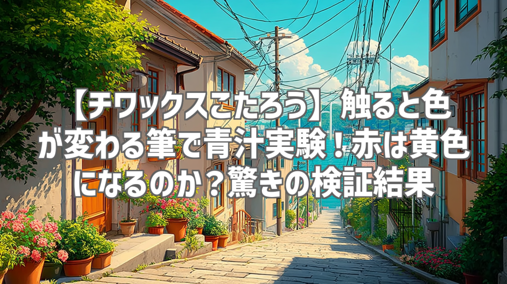 【チワックスこたろう】触ると色が変わる筆で青汁実験!赤は黄色になるのか?驚きの検証結果 皆さん、こんにちは!人気YouTubeレビューブロガーの〇〇です。(※ブログ名が入る想定) 今回は、YouTubeで約120万回再生を突破し、多くの視聴者を虜にしている... -