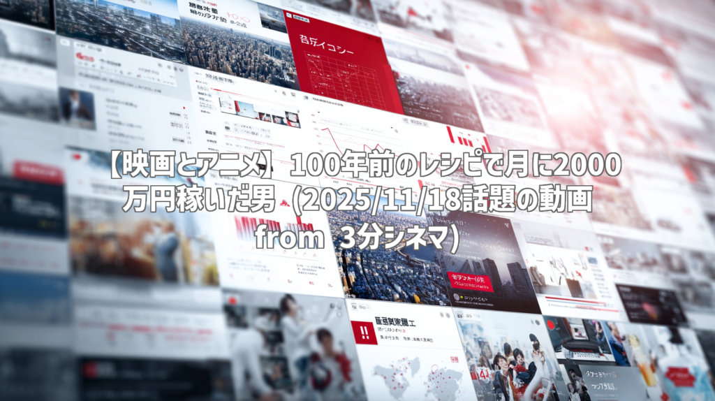 【映画とアニメ】100年前のレシピで月に2000万円稼いだ男 (2025/11/18話題の動画 from 3分シネマ) 皆さん、こんにちは!YouTubeの深淵を巡り、心揺さぶるコンテンツを発掘する人気レビューブロガーの私です。今日ご紹介するのは、YouTubeチャンネル「3分シ...
