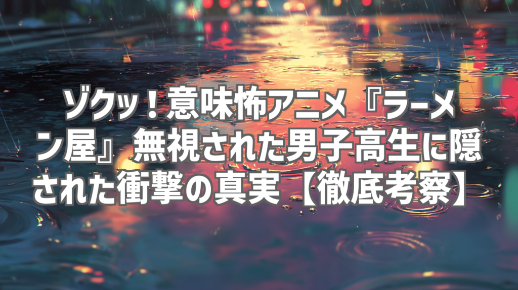 ゾクッ!意味怖アニメ『ラーメン屋』無視された男子高生に隠された衝撃の真実【徹底考察】 こんにちは!YouTubeレビューブロガーの〇〇です。最近、YouTubeで「意味怖(意味が分かると怖い話)」ジャンルにどっぷりハマっていて、夜な夜な考察動画を見漁る...