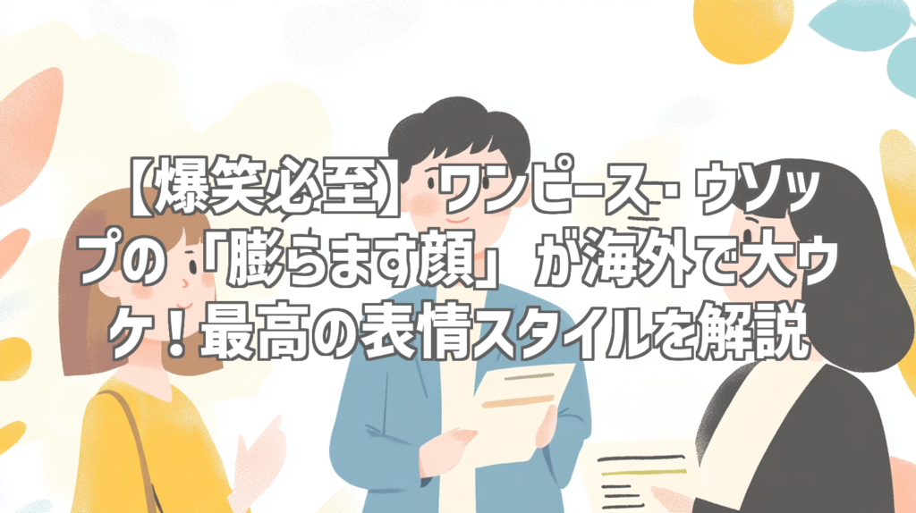 【爆笑必至】ワンピース・ウソップの「膨らます顔」が海外で大ウケ!最高の表情スタイルを解説 皆さん、突然ですが、アニメ『ONE PIECE』のウソップが繰り出すあの「膨らます顔」、覚えていますか?ピンチの時に、顔をパンパンに膨らませて敵を威嚇したり... -