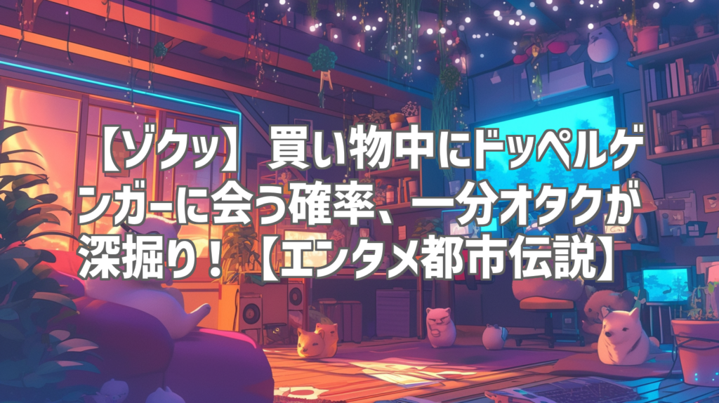 【ゾクッ】買い物中にドッペルゲンガーに会う確率、一分オタクが深掘り!【エンタメ都市伝説】 「まさか、自分と同じ顔をした人間がこの世に存在するなんて…」そんな風に考えたことはありませんか?都市伝説の定番でありながら、その不気味さから多くの人... -