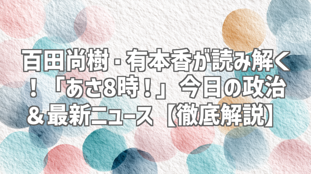 百田尚樹・有本香が読み解く!「あさ8時!」今日の政治&最新ニュース【徹底解説】 どうも、皆さん!人気YouTubeレビューブロガーの〇〇です。今日は、普段から私が注目しているニュース解説チャンネル「ニュースあさ8時!」から、百田尚樹さんと有本香さん... -