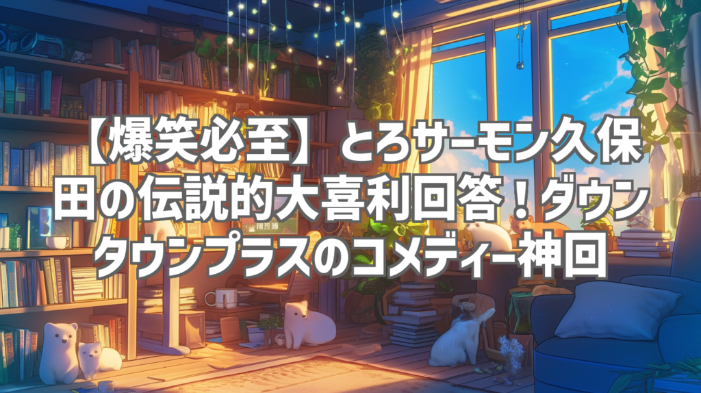 【爆笑必至】とろサーモン久保田の伝説的大喜利回答!ダウンタウンプラスのコメディー神回 皆さん、お笑い好きなら見逃せない、いや、もはや「伝説」と語り継がれるべき一本がYouTubeに爆誕しました!僕も普段からYouTubeのコメディーチャンネルを漁りまく... -