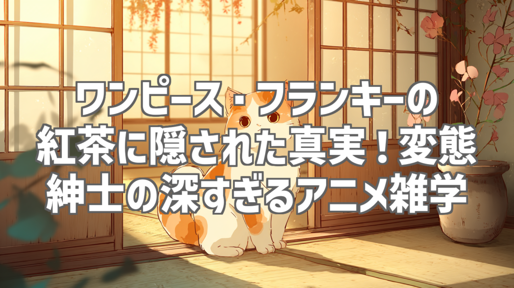 ワンピース・フランキーの紅茶に隠された真実!変態紳士の深すぎるアニメ雑学 ONE PIECEファンの皆さん、そしてアニメ雑学好きの皆さん、こんにちは!人気YouTubeレビューブロガーのユウトです。今回は、巷で話題沸騰中のショート動画「紅茶を嗜む変態紳士... -